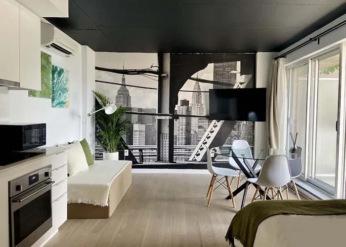 Nestled only 6 minutes' walk from the public park "Champ-de-Mars", the 39 m² Appartement Condo Avec Terrasse Privee Dans Le Quartier Des Spectacles offers quick access to numerous tourist attractions nearby. Also, take advantage of fitness classes to enrich your leisure.